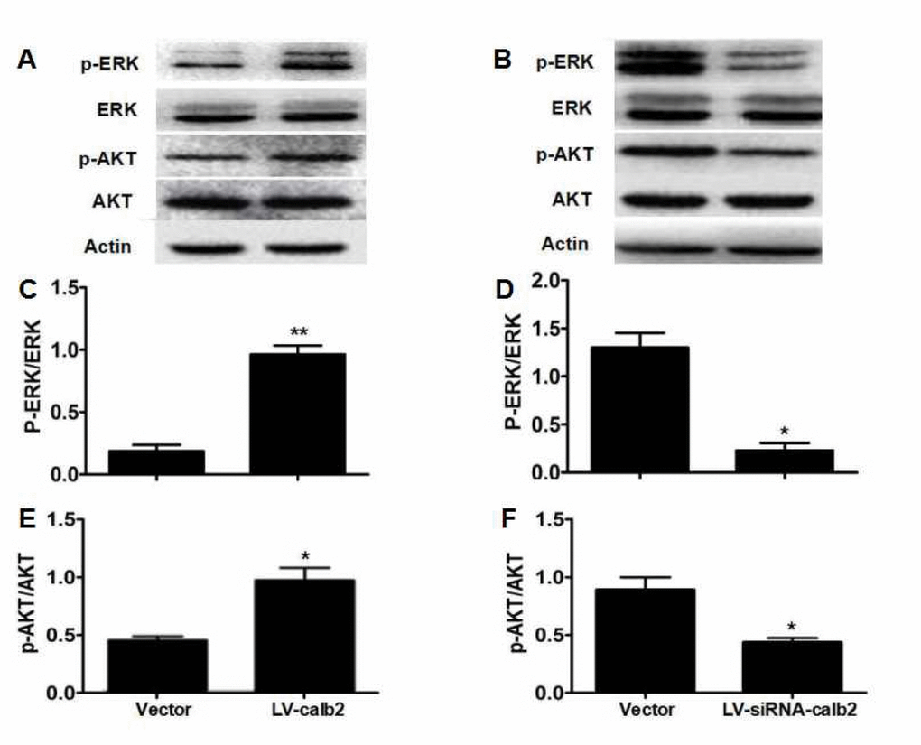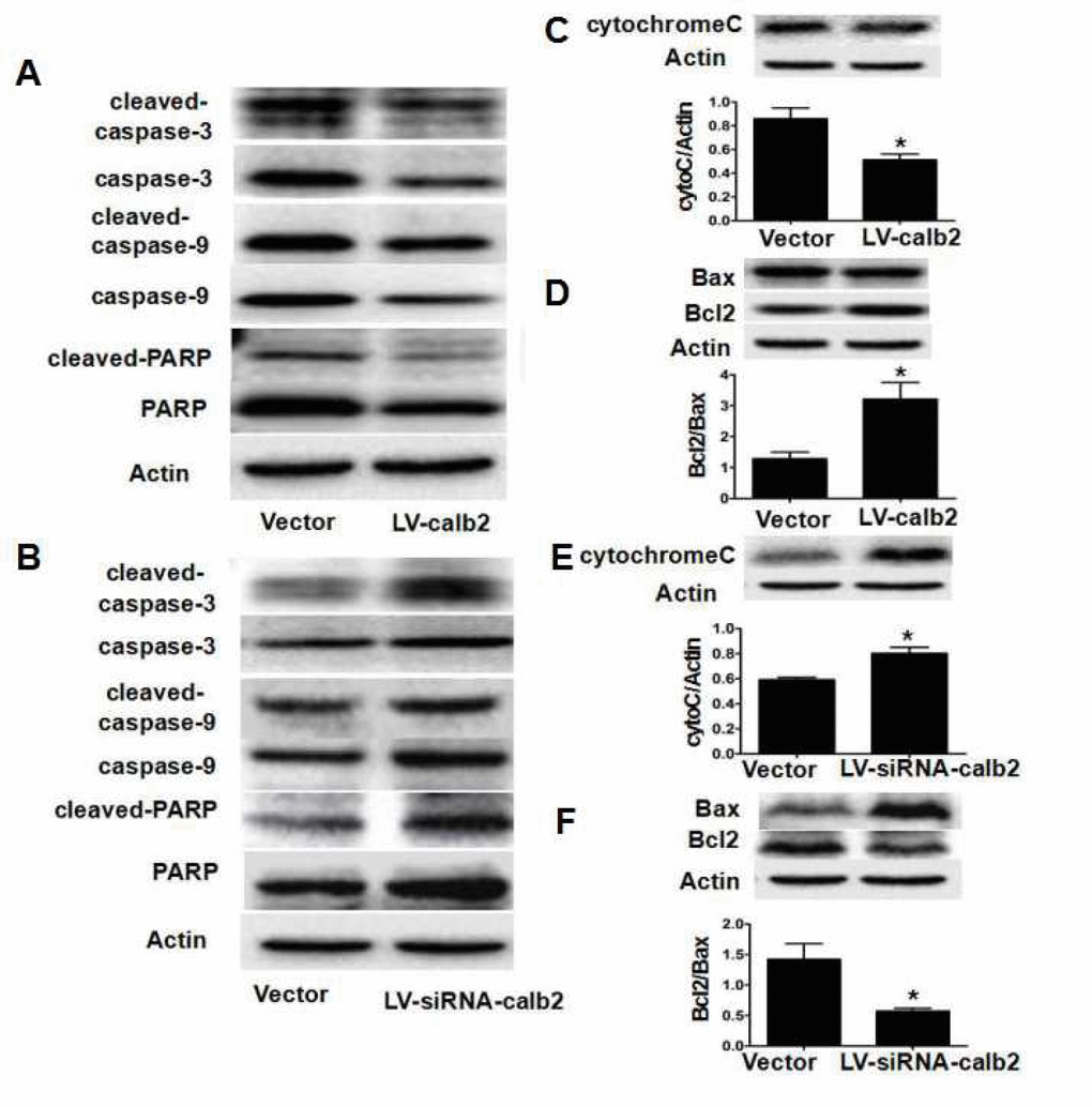 Xu WD finished the main experiments and wrote the first draft of the manuscript. Zhu Q and Zhang B helped Xu WD and Liu S in experiments. Liu S and Dai XN developed the vectors and LV-calb2 and LV-siRNA-calb2. They are graduate students of Cui YG. Gao C and Gao L helped with Western blotting. Liu JY, Gao C and Gao L participated in all group discussions and in experimental improvement. Cui YG designed and guided the whole study and revised the manuscript. All authors read and approved the final manuscript.