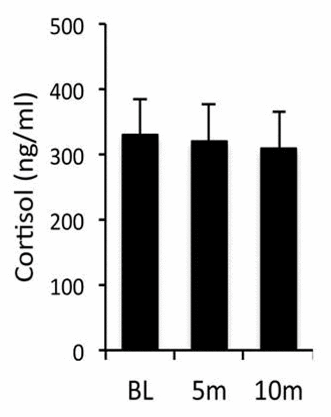 Figure 1 shows that serum cortisol values do not increase from basal within 10 minutes of ketamine administration, indicating that cortisol values obtained within 10 min of tranquilisation with ketamine in the outdoor cage situation were basal.