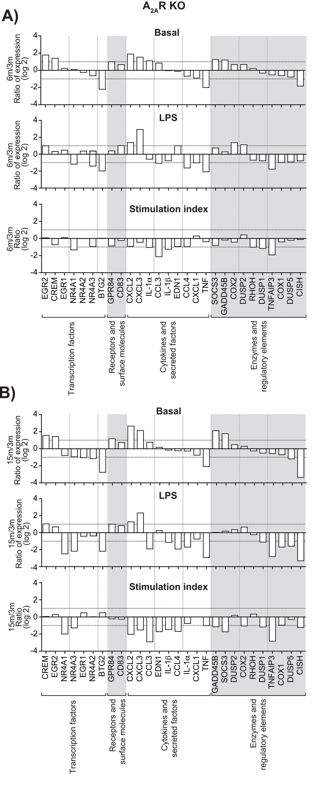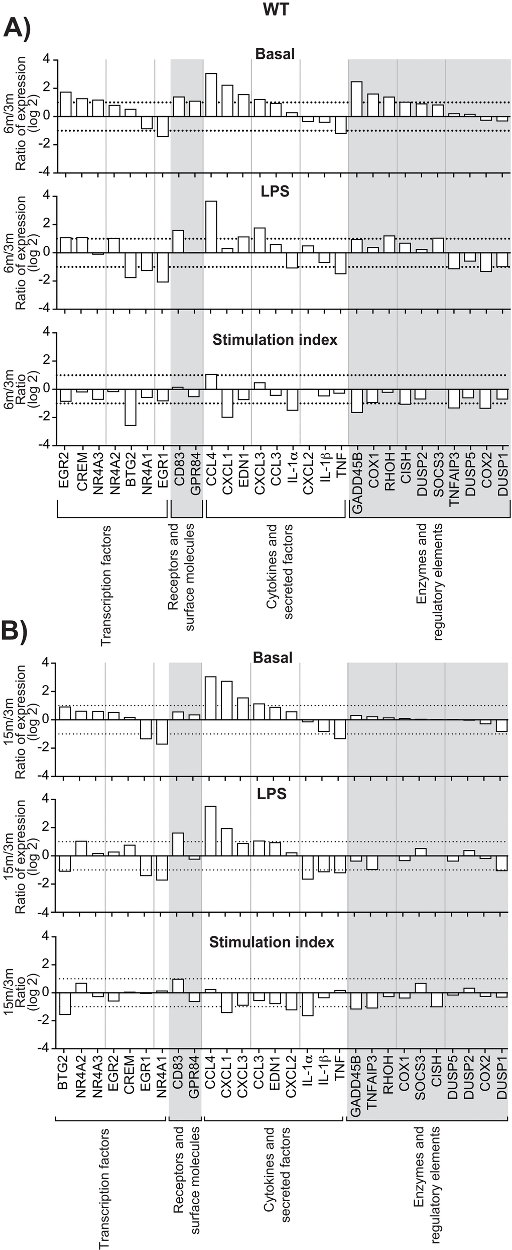 | At 6m, both in basal and LPS conditions | At 15m, both in basal and LPS conditions | Stimulation indexes | At 6m, both in basal and LPS conditions | At 15m, both in basal and LPS conditions | Stimulation indexes | ||||||||||||||||||||||||||||||||||||||||||||||||||||||||||||||||||||||||||||||||||||||||||||||