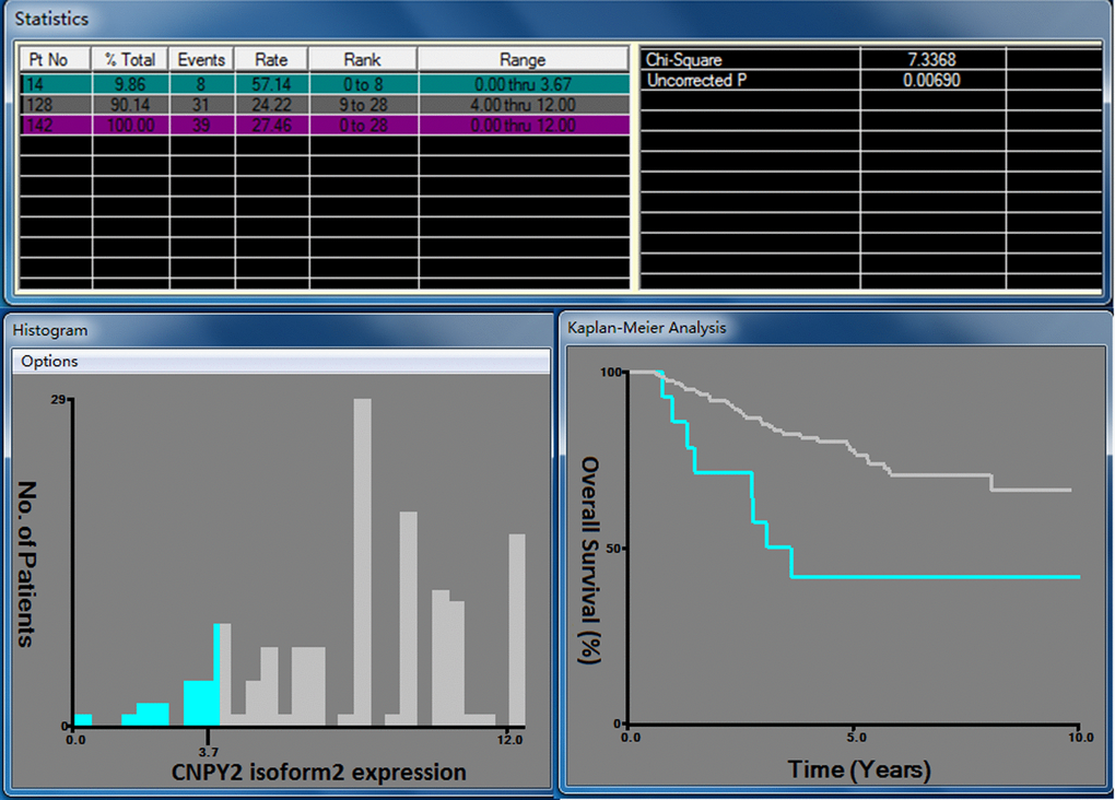Cutoff point for CNPY2 isoform2 expression and clinicopathological characteristics