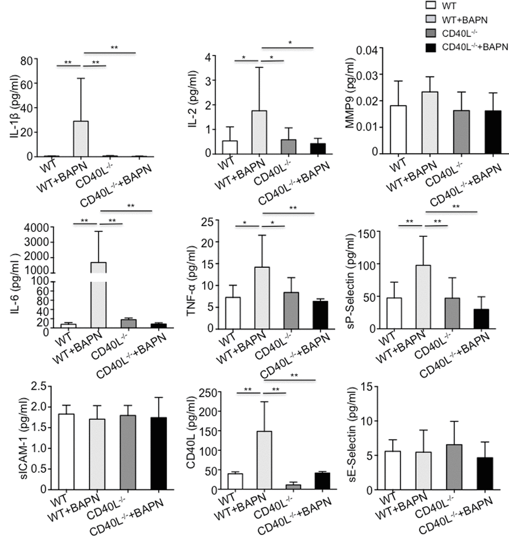 Platelet expressed CD40L correlates with elevation of pro-inflammatory chemokines in BAPN treated wild mice