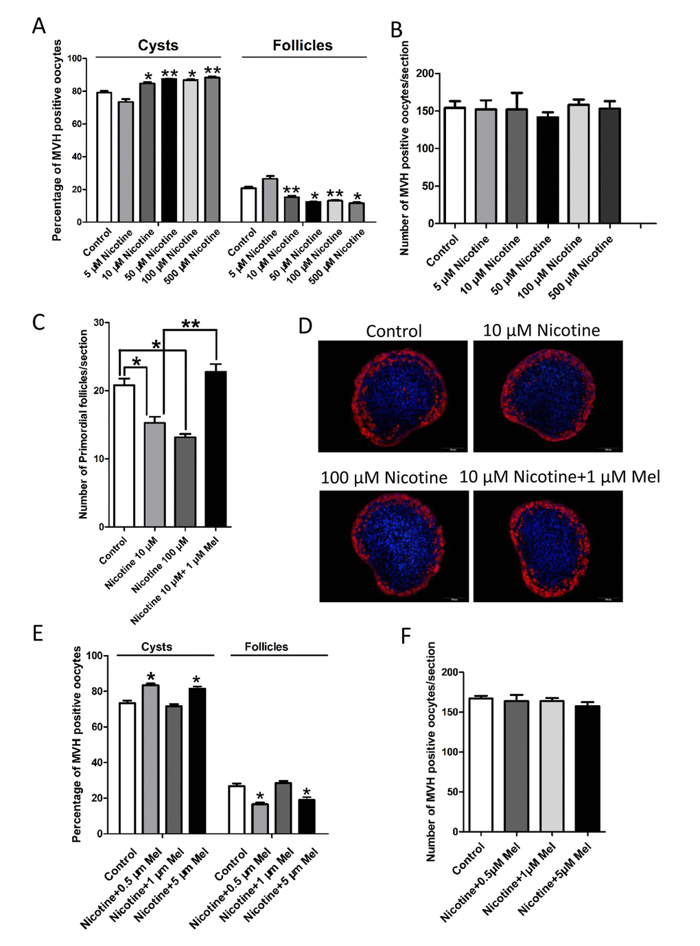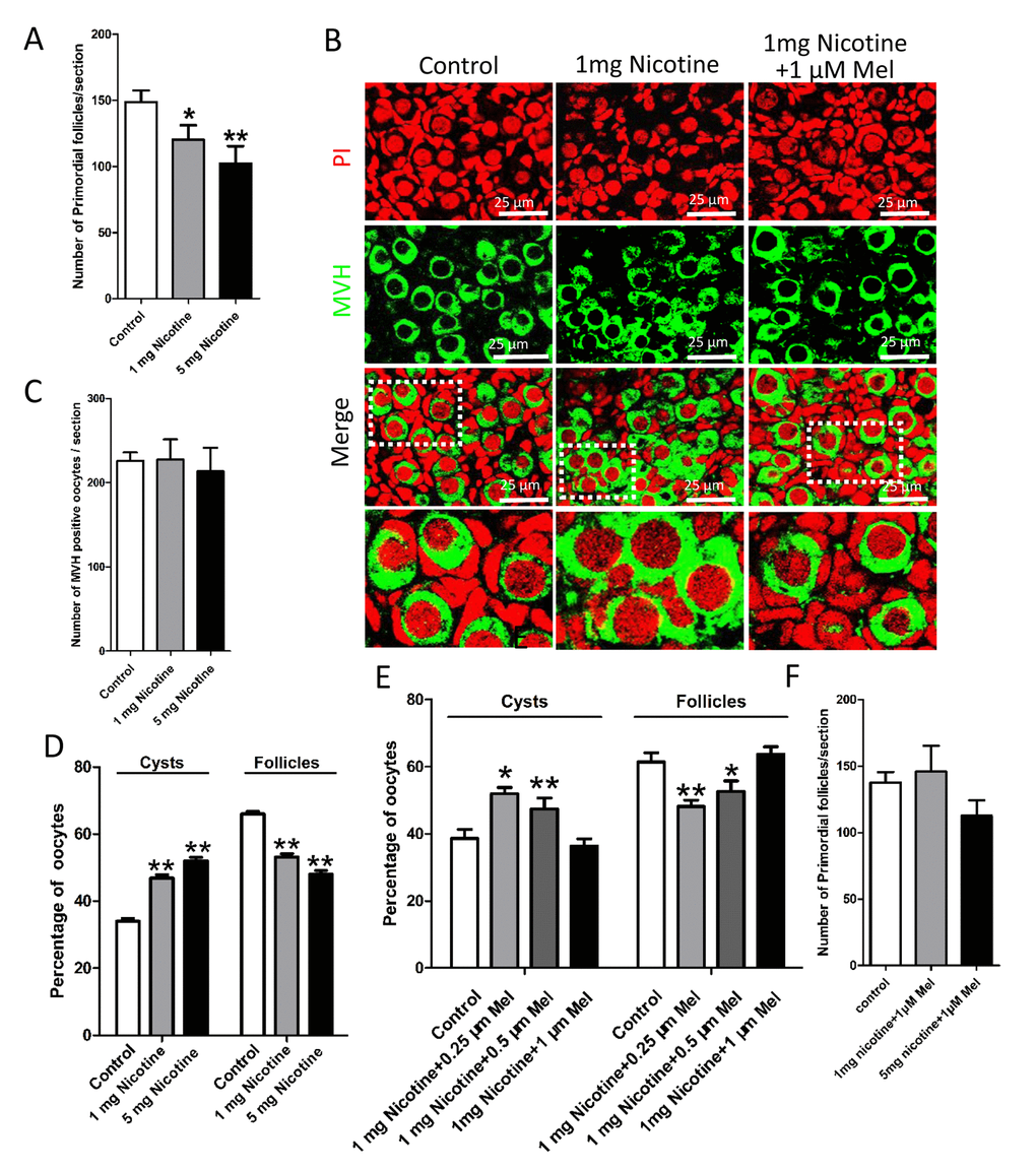 In this paper, 1 μM melatonin also prevented the 10 μM nicotine in vitro effect on the follicle assembly (Figs. 4E and 4F).
