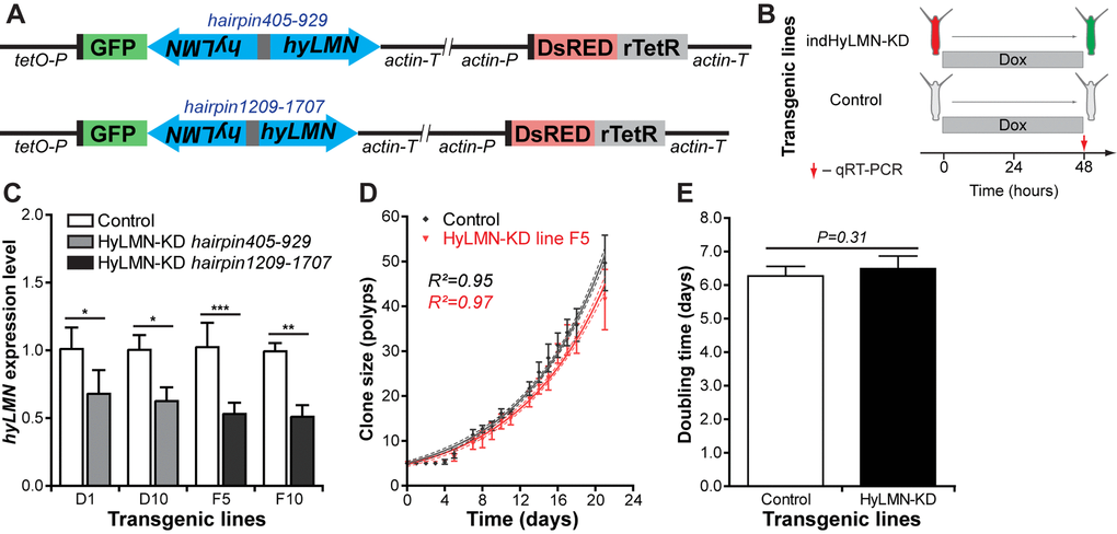 Inducible knock-down of hyLMN does not affect stem cell activity