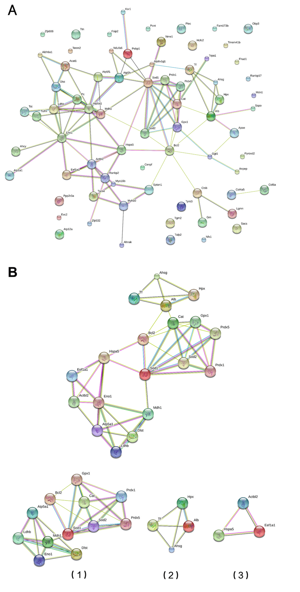| GO:0005488 | binding | 14 | 0.0001 | Alb,Atp5a1,Bcl2,Cat,Dlst,Eef1a1,Gpx1,Hpx,Ldhb,Mdh1,Prdx1,Sod1,Sod2,Tf |