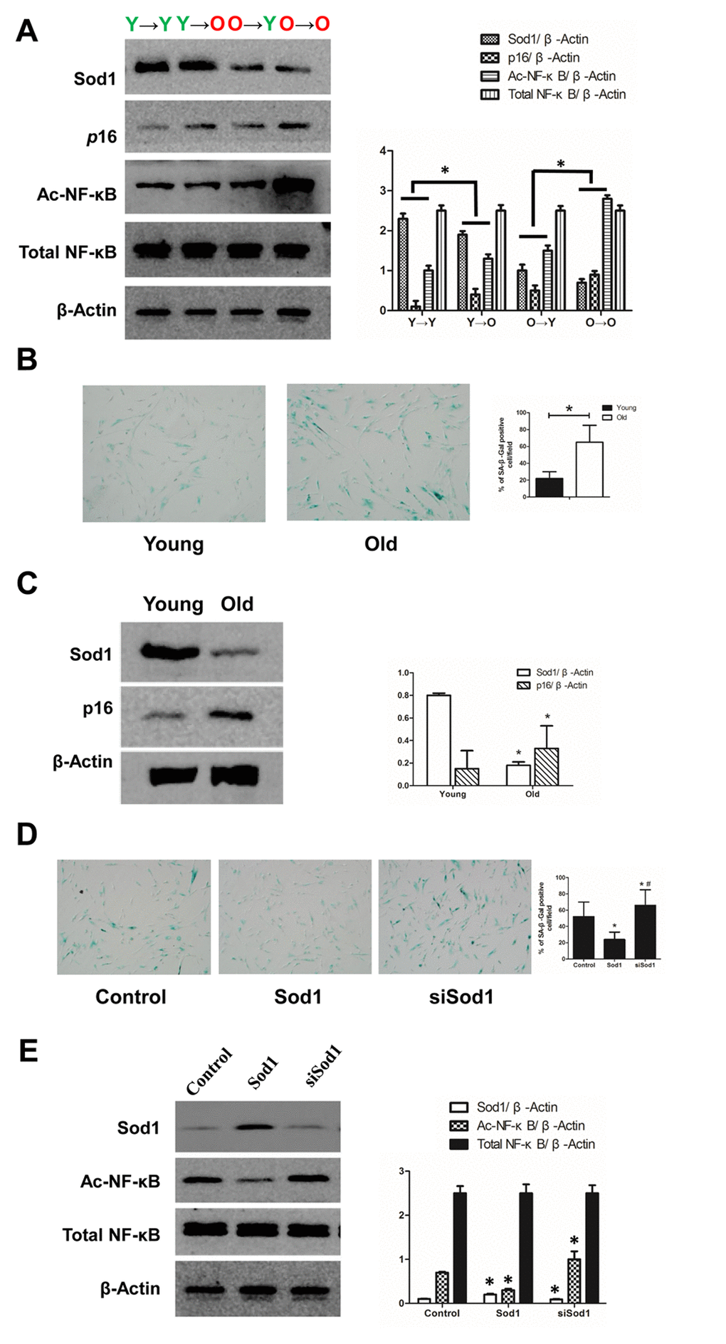 We also observed that Sod1 knockdown led to increased Ac-NF-κB expression and that overexpression of SOD1 had the opposite effect. In both cases, total NF-κB was unchanged. (Figure 4D). Thus, Sod1 knockdown appears to promote cell senescence, while Sod1 overexpression appears to inhibit it.