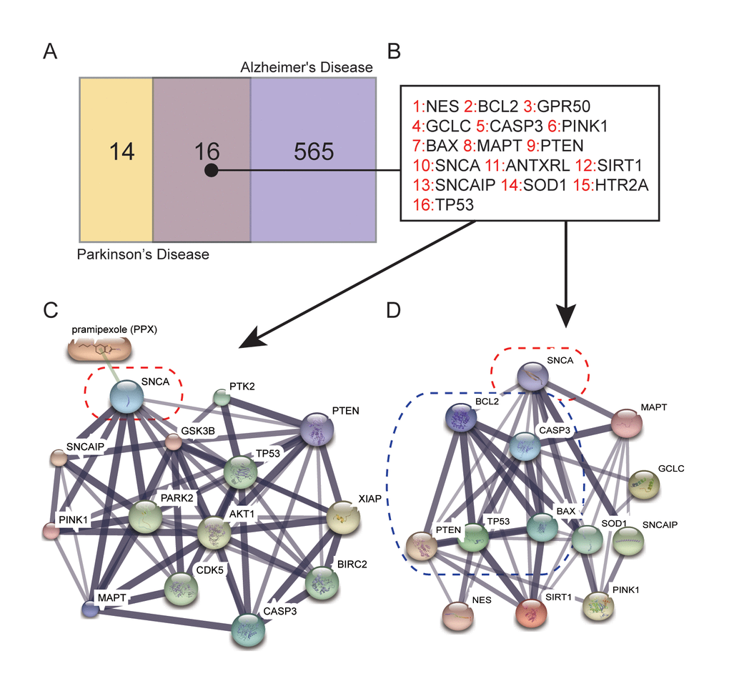 DiGSeE (http://210.107.182.61/geneSearch/) is a search platform for genetic bases of human diseases. “Parkinson” and “Alzheimer’s Disease” were used as keywords during co-existing gene selection. The interactions between these genes and PPX were determined and plotted via STITCH (http://stitch.embl.de/) and protein-protein interactions were analyzed on STRING (https://string-db.org/), with the calculation performed by Dijkstra algorithm.