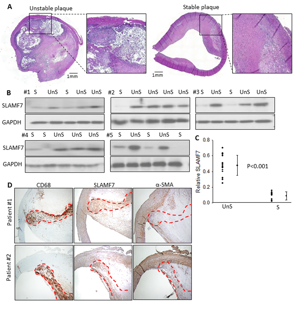 Protein expression of SLAMF7 in clinical carotid atherosclerotic plaques