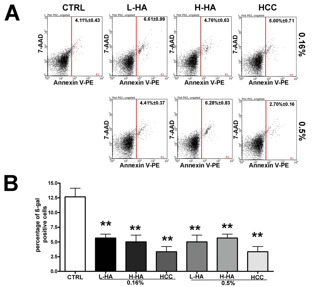 Effects of HA formulations on cell cycle, apoptosis, and senescence