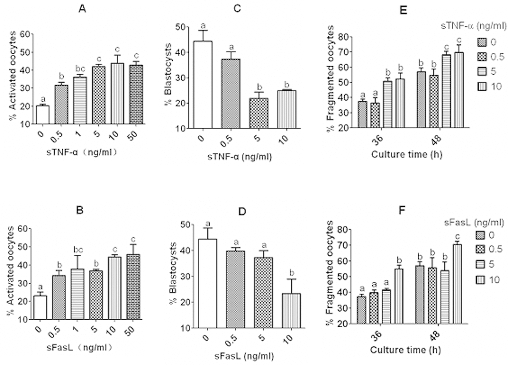 Effects of culture with different concentrations of sTNF-α or sFasL on activation susceptibility and embryo developmental potential of aging DOs