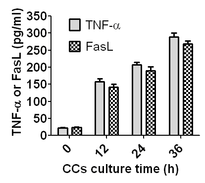 Contents of sTNF-α and sFasL in CM conditioned with CCs for different times