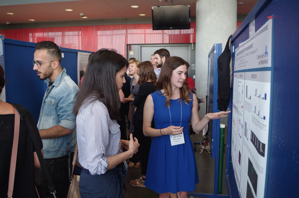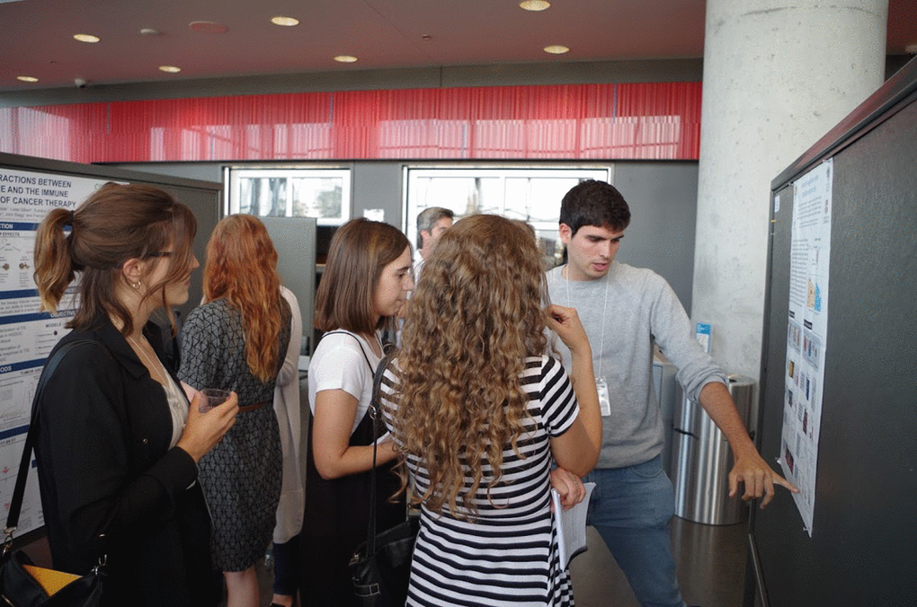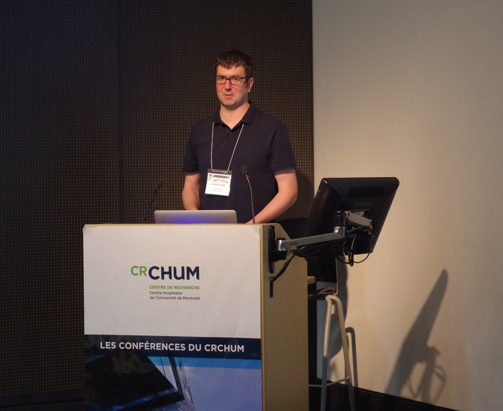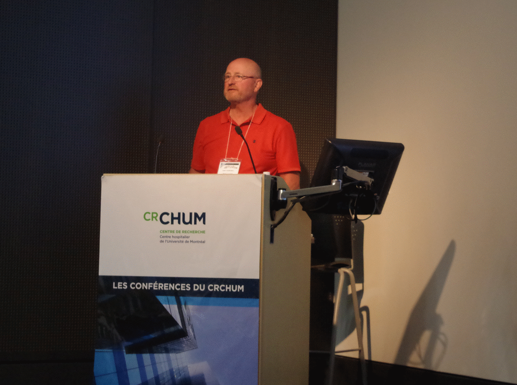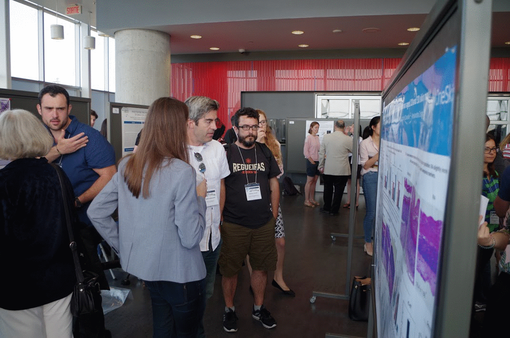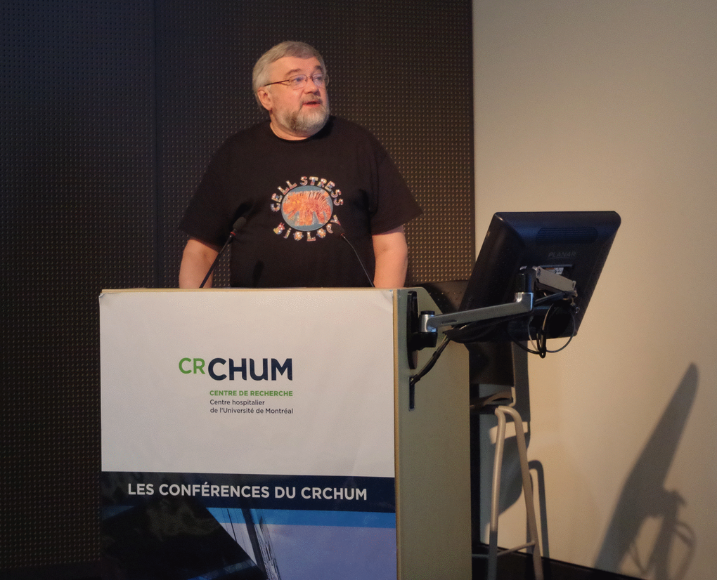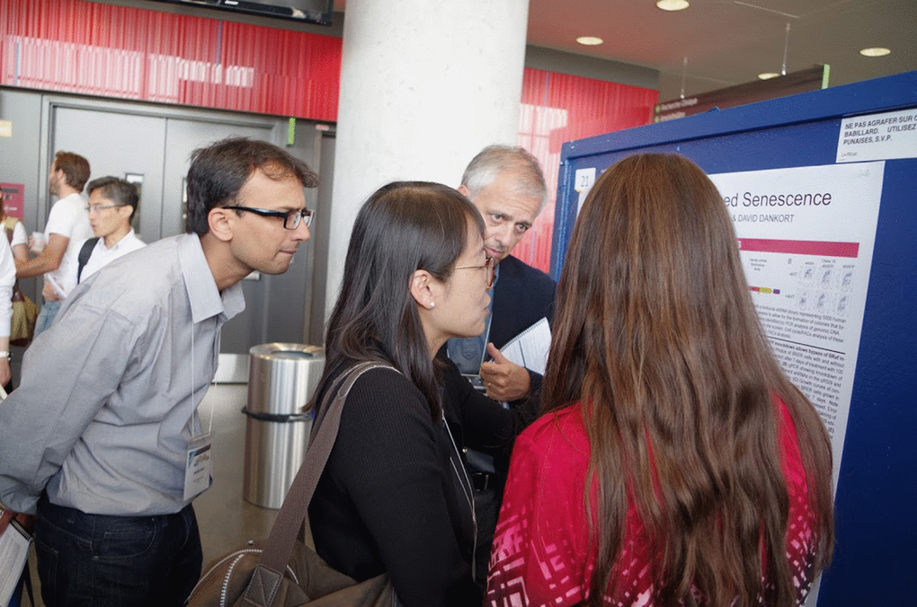 Frederic Lessard from the Ferbeyre laboratory (Université de Montréal), described the senescence-associated ribosome biogenesis defects and how they are linked to the inhibition of CDK4 via accumulation of ribosome-free RPS14. This work expands the extraribosomal functions of ribosomal proteins, which are now linked to both the p53 and the RB tumor suppressor pathways [1]. Guadalupe-Elizabeth Jimenez (CINVESTAV, Mexico) showed an intriguing connection between B-distroglycan and the nucleolus in senescent cells. Jiri Bartek (Copenhagen, Denmark), delivered the EMBO Keynote lecture summarizing the role of replication stress and the DNA damage response in cellular senescence [2]. Recent work from his laboratory showed that PARP inhibition leads to accelerated replication fork progression causing replication stress in tumor cells [3]. Fred Dick (Western University, Canada), presented novel roles of RB suppressing the expression of satellite repeats and regulating chromosome condensation [4]. Karl Riabowol (University of Calgary, Canada) presented a link between senescence and endocytosis via RB in cells that express the ING1a epigenetic regulator. Jesus Gil (MRC, UK) and Mathieu Deschênes (Université de Sherbrooke, Canada) presented data linking the control of alternative splicing to cellular senescence.