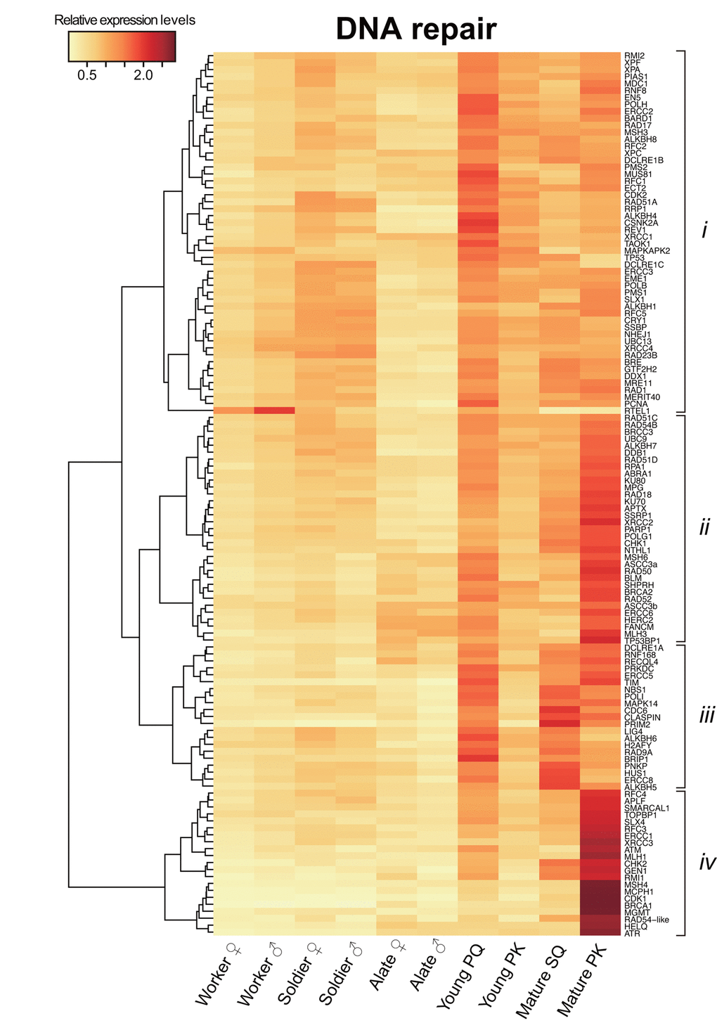 Caste-specific expression analysis of DNA repair genes