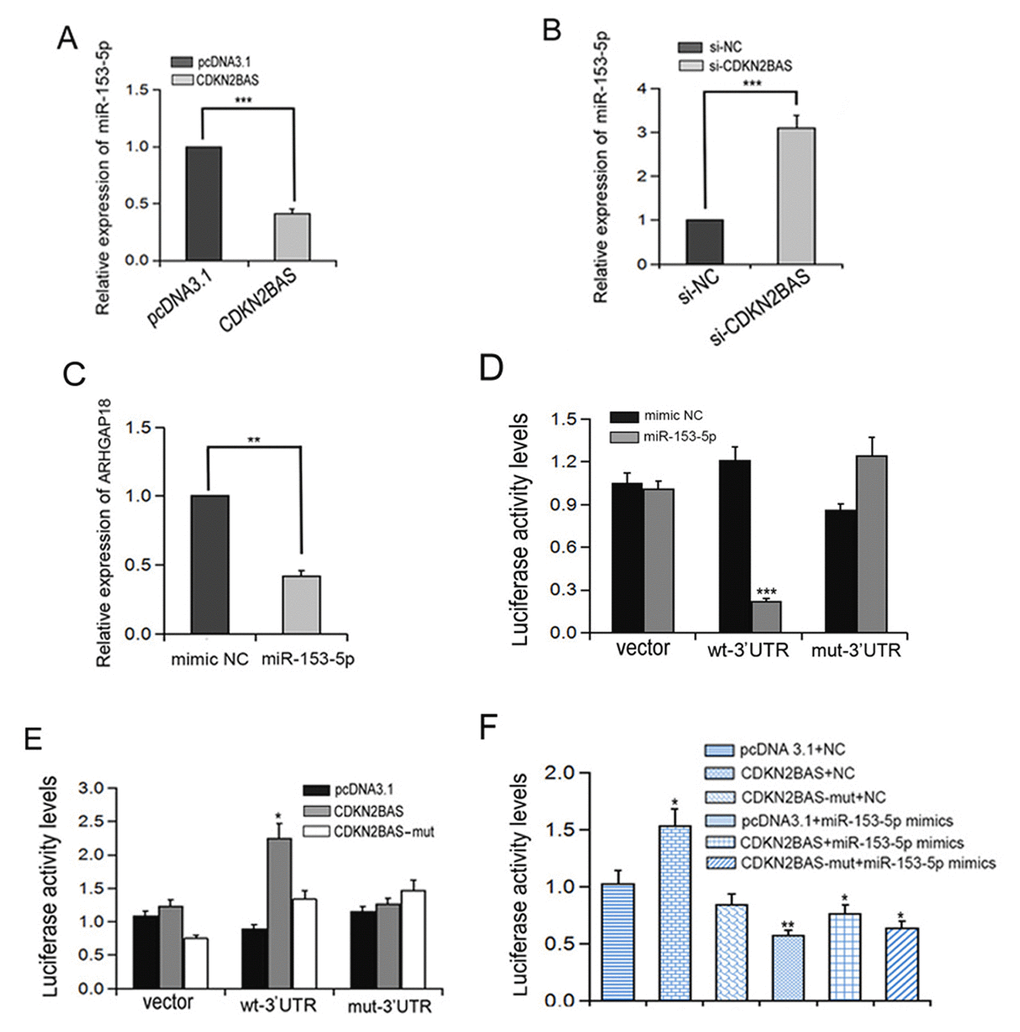CDKN2BAS up-regulates ARHGAP18 expression via competitively binding with miR-153-5p