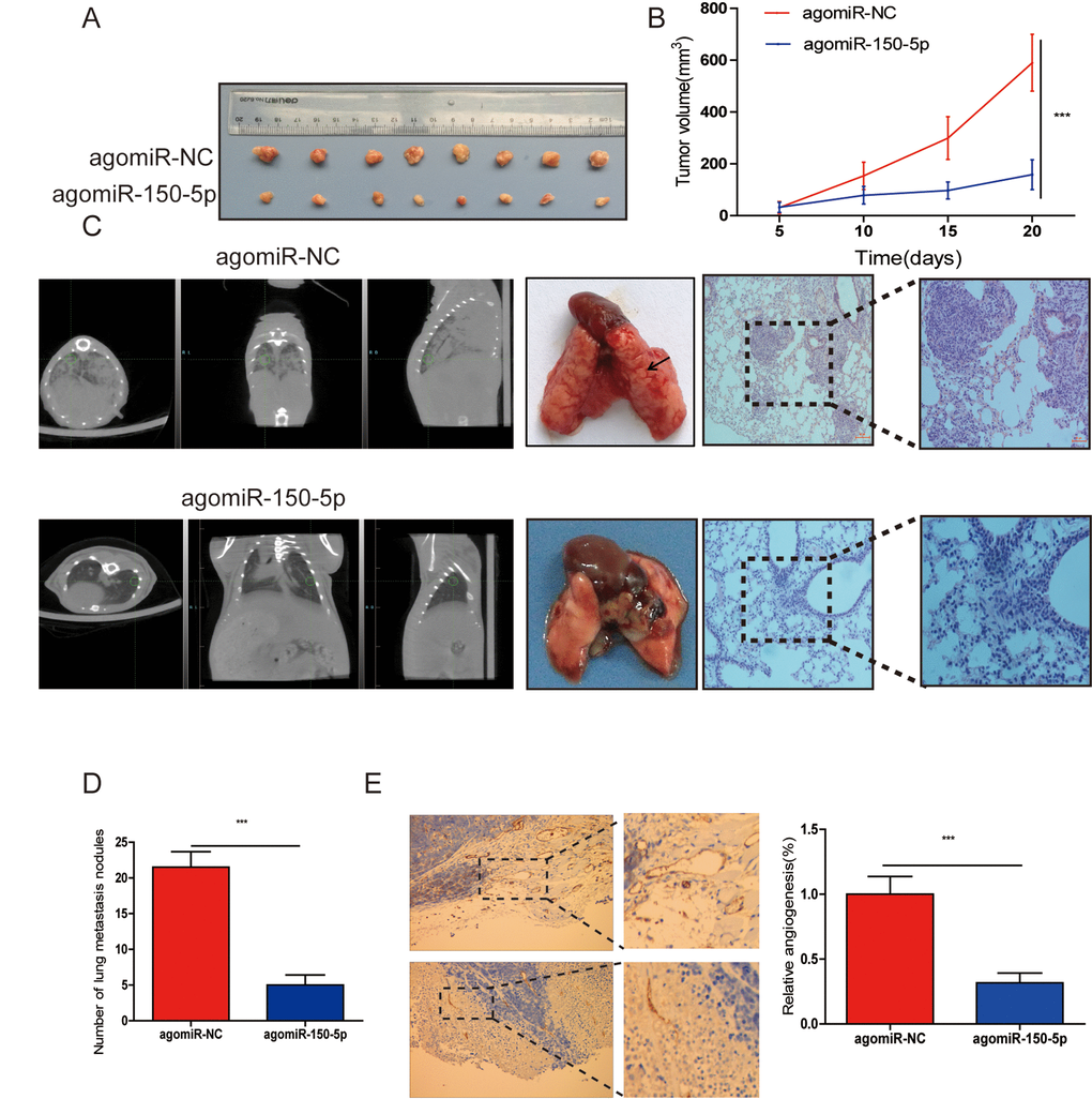 miR-150-5p ameliorates CRC growth, metastasis and angiogenesis in vivo