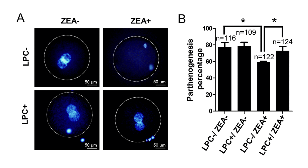 LPC could protect the inhibition of ZEA on parthenogenetic activation of porcine oocytes