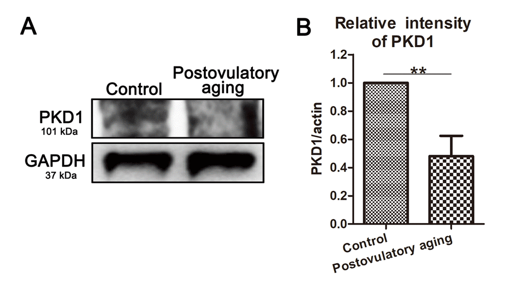 Expression of PKD1 decreases in postovulatory aging porcine oocytes