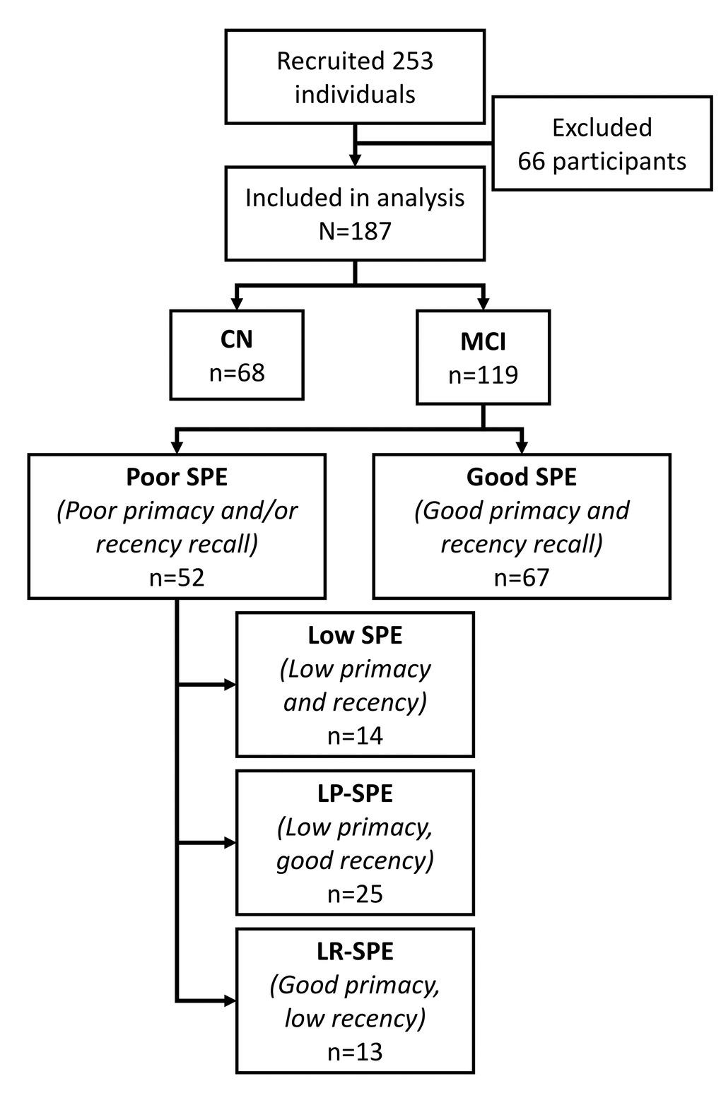 Table 2. Univariate analysis comparing CN participants with MCI participants with Good SPE and Poor SPE performance.
