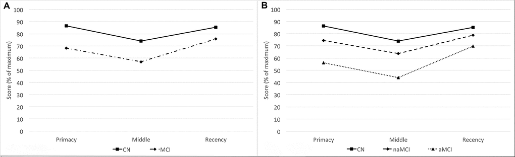 - 4. Moser B, Deisenhammer EA, Marksteiner J, Papousek I, Fink A, Weiss EM. Serial position effects in patients with mild cognitive impairment and early and moderate Alzheimer’s disease compared with healthy comparison subjects. Dement Geriatr Cogn Disord. 2014; 37:19–26. https://doi.org/10.1159/000351675 [PubMed]