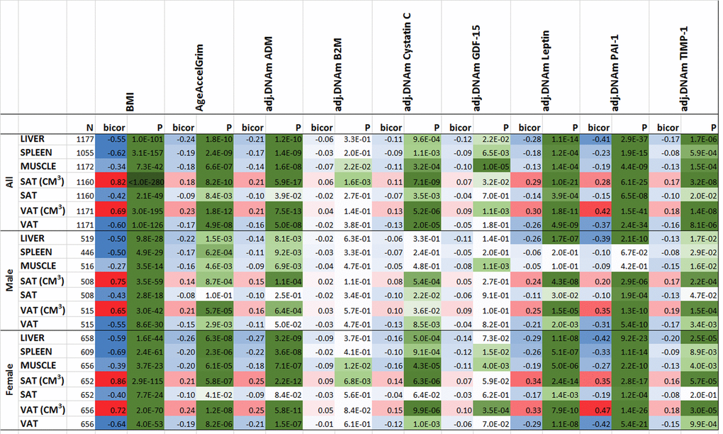 Jr , Vasan RS, Fox CS. Cross-Sectional Associations of Computed Tomography (CT)-Derived Adipose Tissue Density and Adipokines: The Framingham Heart Study. J Am Heart Assoc. 2016; 5:e002545. https://doi.org/10.1161/JAHA.115.002545 [PubMed] - 39. Horvath S, Erhart W, Brosch M, Ammerpohl O, von Schönfels W, Ahrens M, Heits N, Bell JT, Tsai PC, Spector TD, Deloukas P, Siebert R, Sipos B, et al. Obesity accelerates epigenetic aging of human liver. Proc Natl Acad Sci USA. 2014; 111:15538–43. https://doi.org/10.1073/pnas.1412759111 [PubMed]