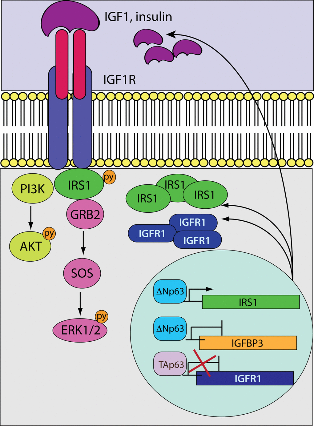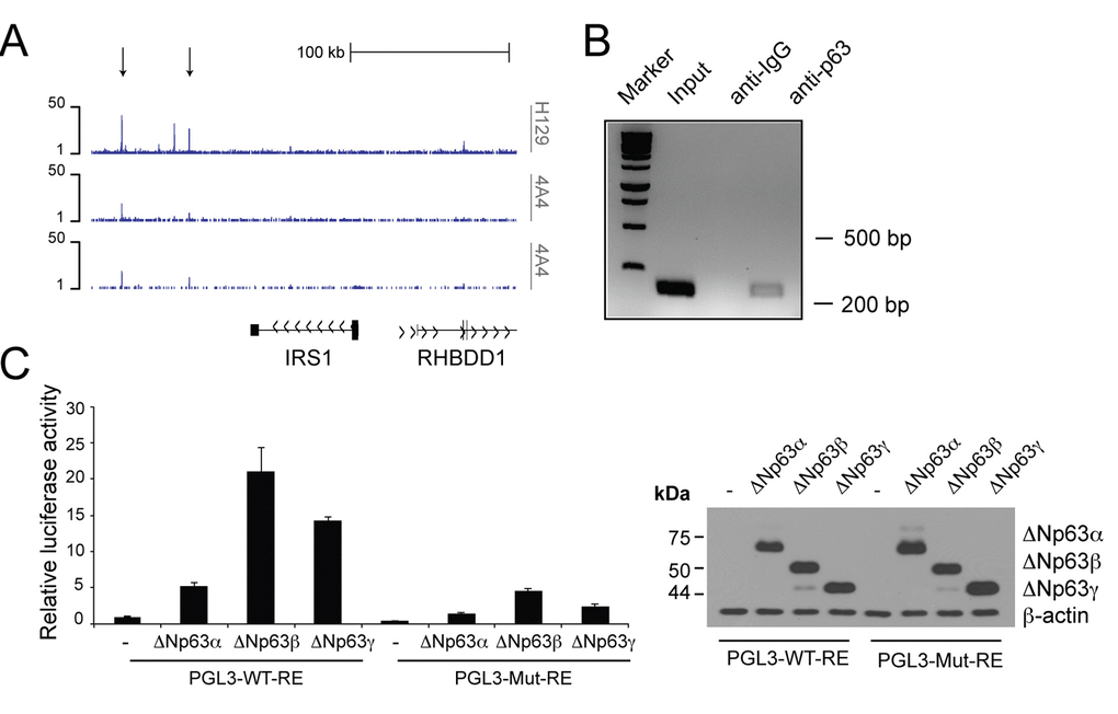 p63 induces IRS1 expression by binding directly to the regulatory region of the Irs1 gene