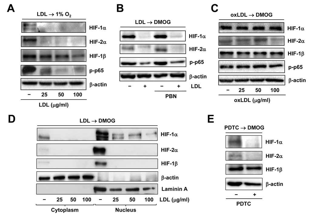 LDL inhibits activation of both HIF and NF-κB pathways in ECs exposed to hypoxia
