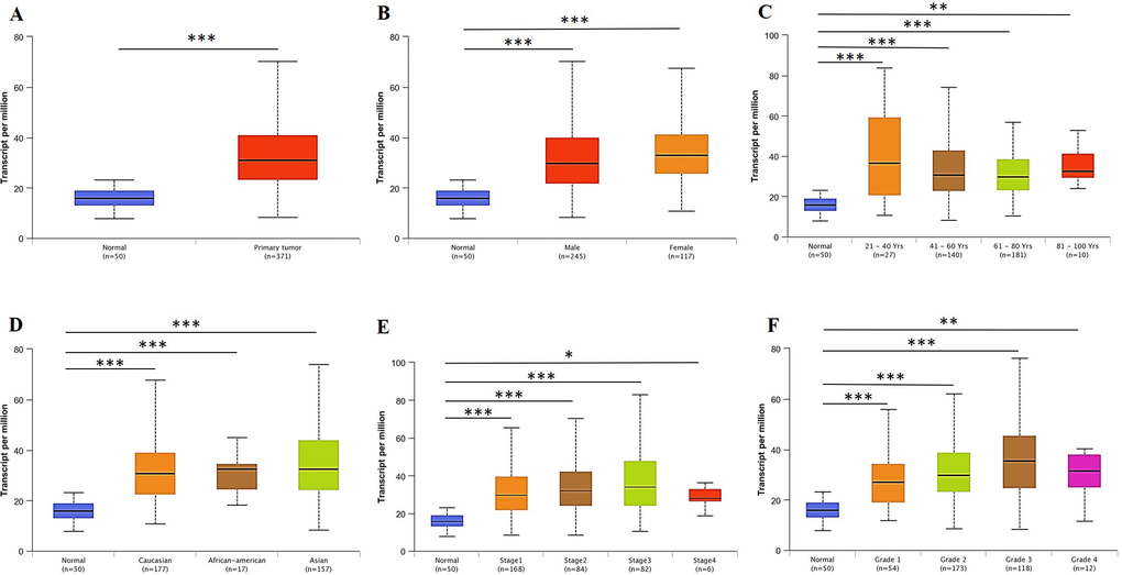 - 57. Chandrashekar DS, Bashel B, Balasubramanya SAH, Creighton CJ, Ponce-Rodriguez I, Chakravarthi B, Varambally S. UALCAN: A Portal for Facilitating Tumor Subgroup Gene Expression and Survival Analyses.Neoplasia.2017;19:649-58. https://doi.org/10.1016/j.neo.2017.05.002 [PubMed]