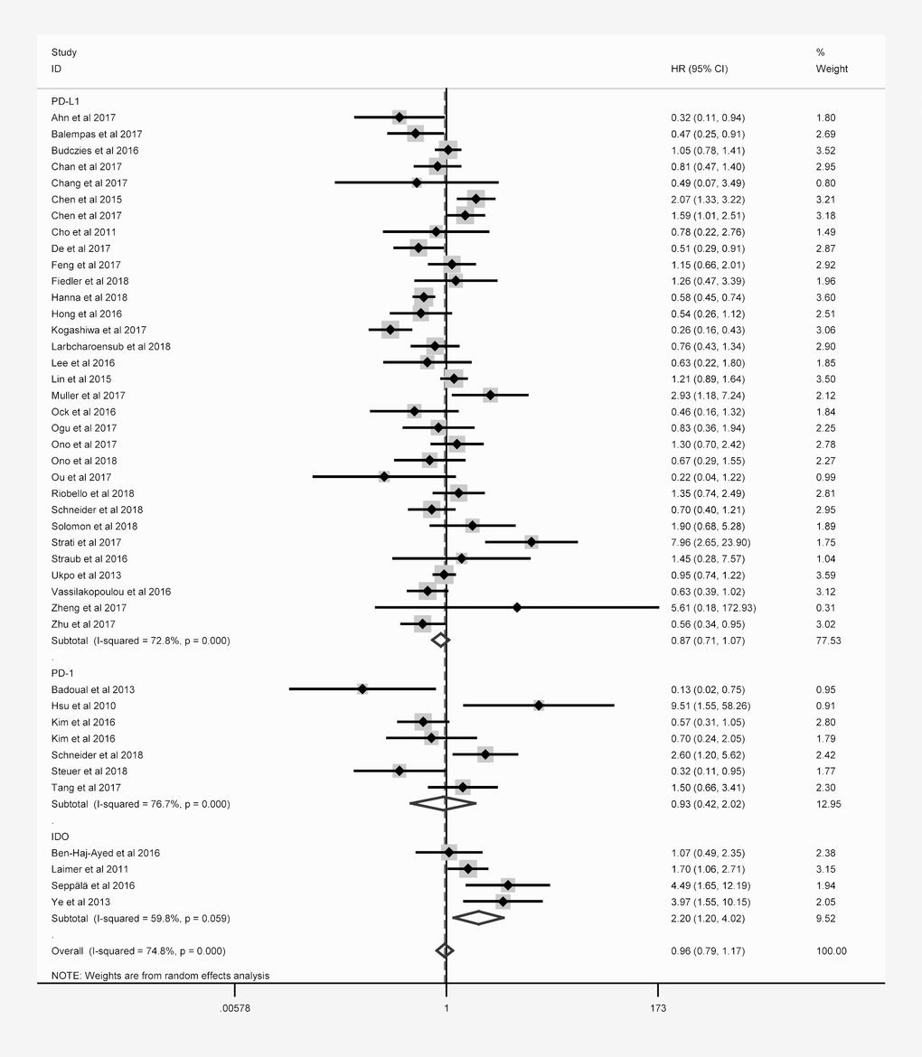 | Tang et al. 2017 [79] | PD-1 | China | Asian | NPC | 96 | NA | NA | IHC | NA | OS | estimated | P | 6 | ||||||||||||||||||||||||||||||||||||||||||||||||||||||||||||||||||||||||||||||||||||||