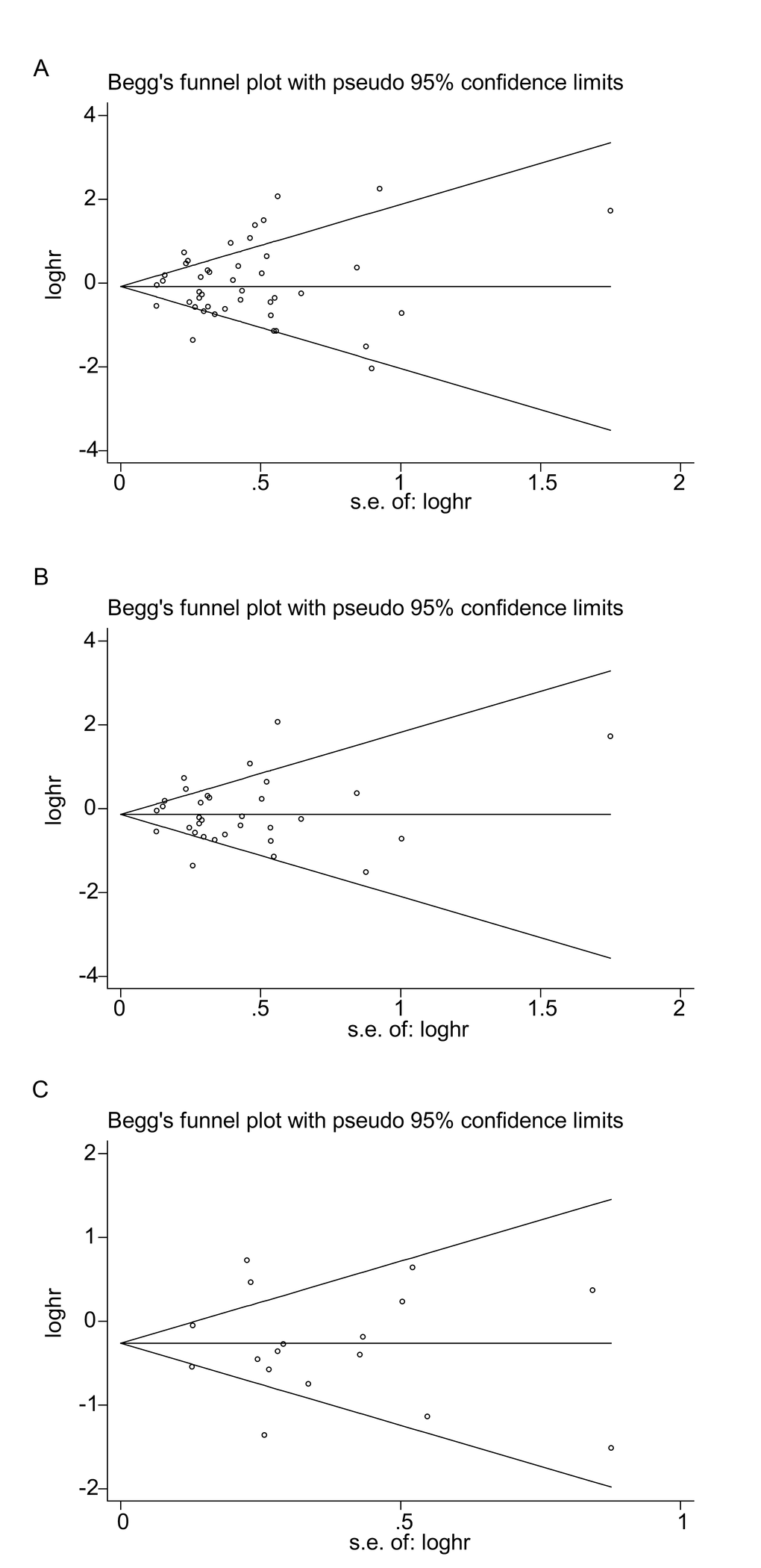 Heterogeneity among the primary studies was evaluated by Cochrane’s Q statistic and the I2 statistic. A P value < 0.10 in Cochrane’s Q test or an I2 value > 50% indicates substantial heterogeneity among studies, so a random effects model was used to calculate the pooled HR and 95% CI in such cases. Otherwise, a fixed effects model was applied.
