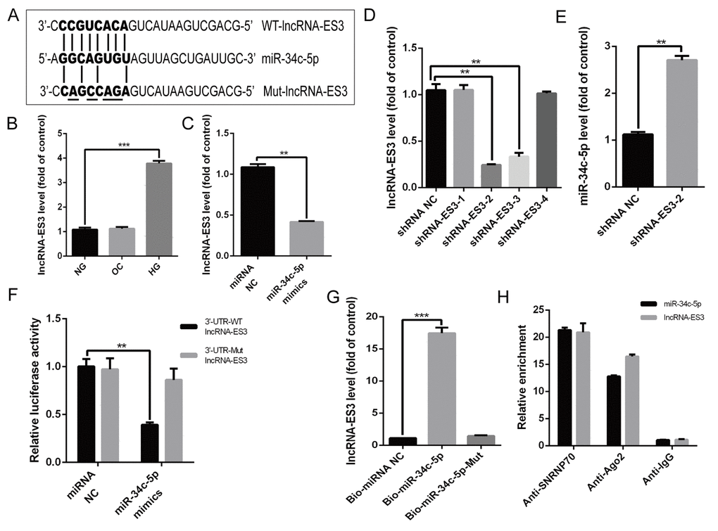 lncRNA-ES3 suppressed miR-34c-5p expression by direct interaction
