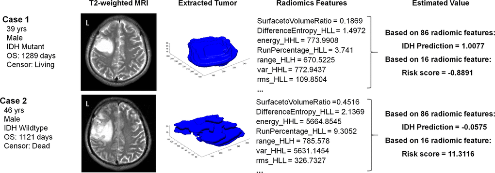 In conclusion, we demonstrated that radiomic features could serve as an alternative approach for IDH phenotype classification in LGG patients. The MR imaging is a routine examination for gliomas, and quantitative radiomic and radiogenomic analyses can potentially provide a noninvasive modality for prognosis prediction and phenotypic monitoring. As the whole process of radiomic analysis takes less than 10 minutes for an individual case and can be practice automatically with out further cost, this newly developed technique is increasingly applied to assisting clinical diagnosis and decision making.