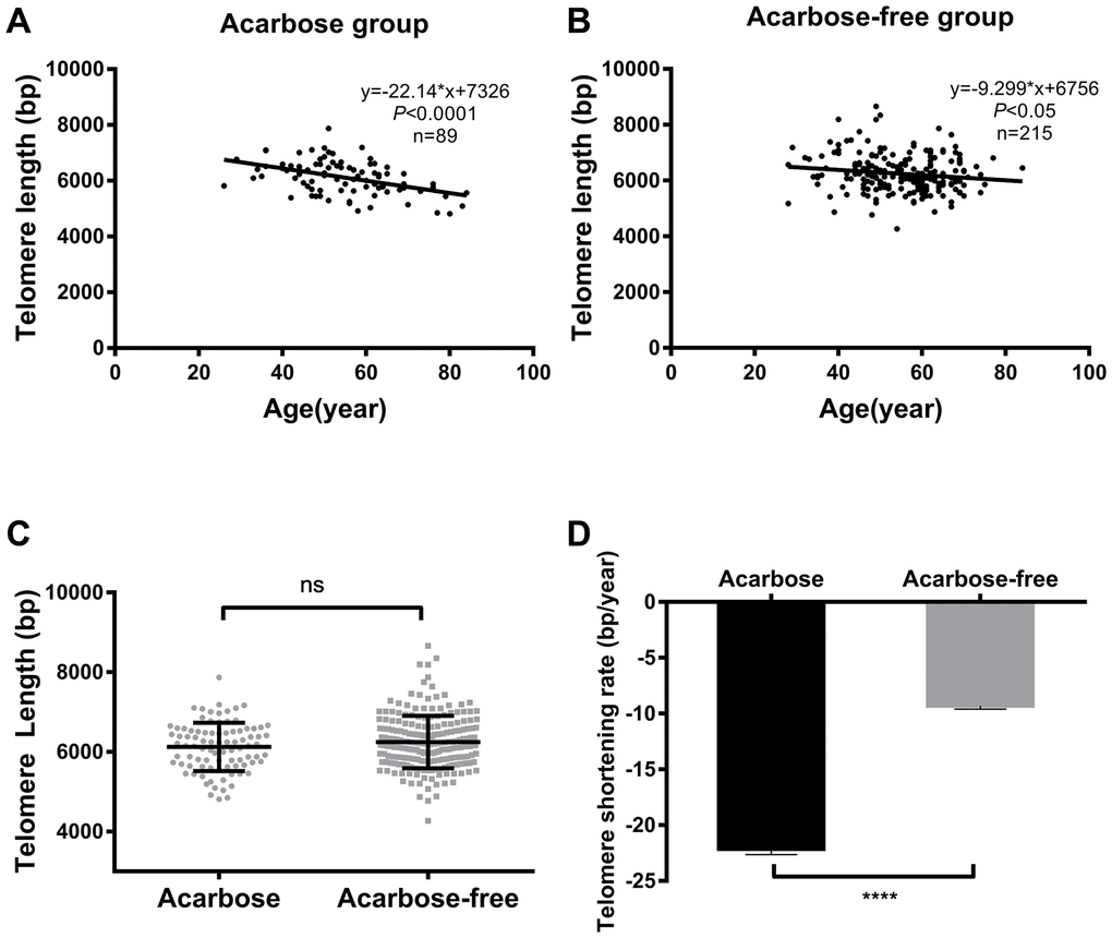 The strengths and limitations of our study are worth considering. This is the first study to explore the effects of antidiabetic agents on TSR and aging in patients with T2DM. Importantly, we show for the first time that people and the sample size of our study is small. Besides, the cross-sectional design of the study does not permit exploration of causality between acarbose treatment and telomere shortening, therefore, longitudinal studies will be required.
