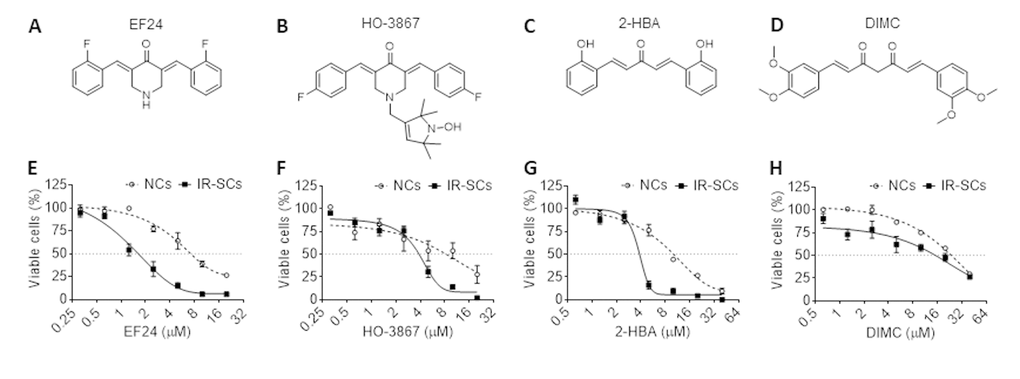 Table 1. EC50 values of selective curcumin analogs against WI‐38 non-senescent cells (NCs) and IR-induced senescent cells (IR-SCs).