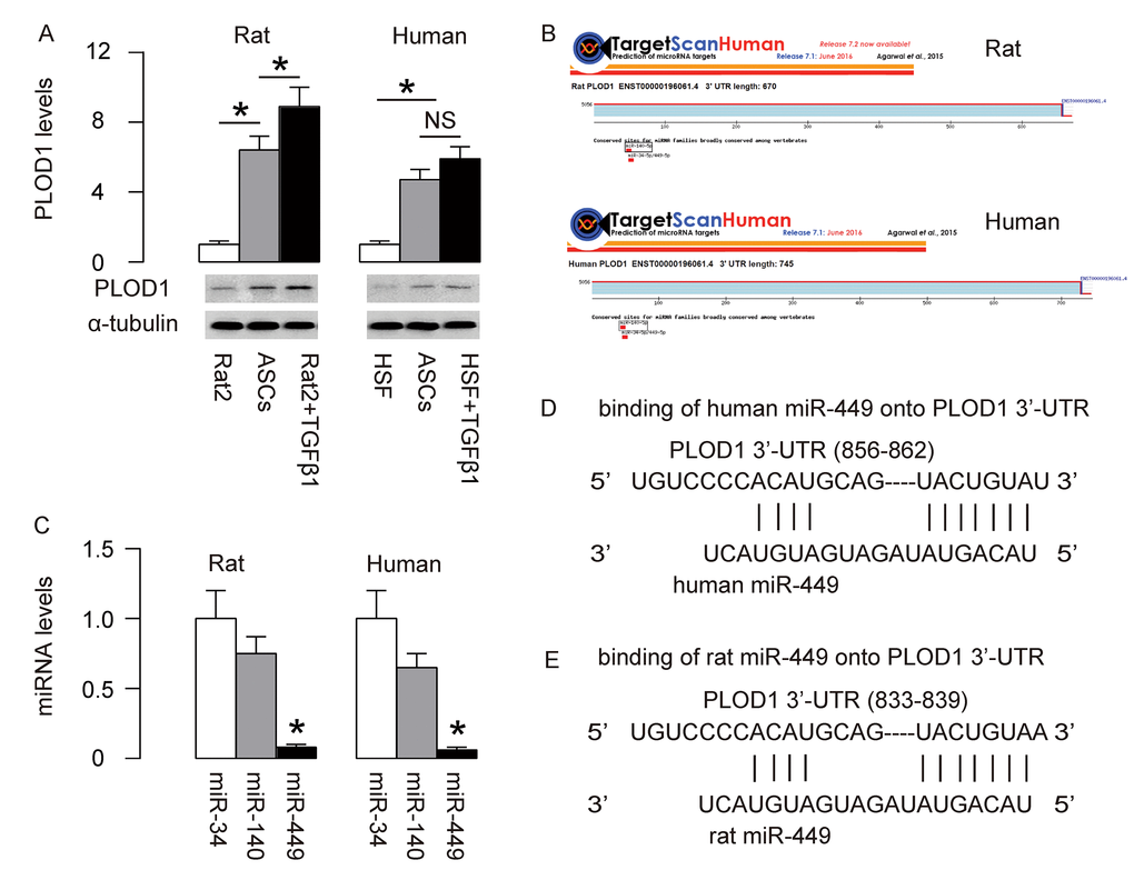 MiR-449 targets 3’-UTR of PLOD1 mRNA to inhibit its protein translation in ASCs