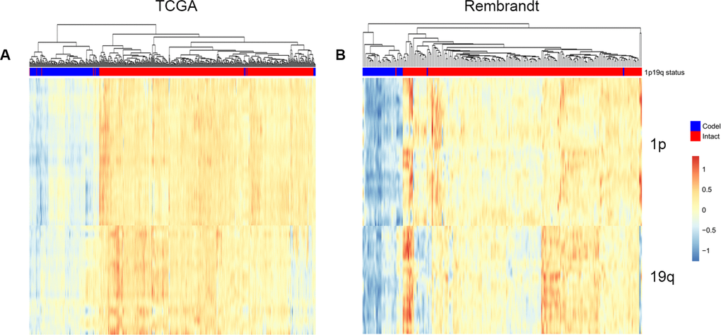 Chromosome 1p/19q co-deleted patients exhibited a distinct expression profile