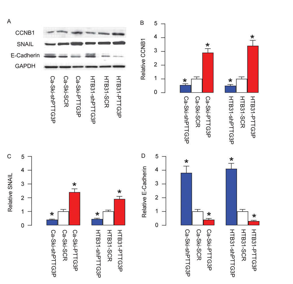 PTTG3P increases CCNB1, SNAIL and inhibits E-Cadherin