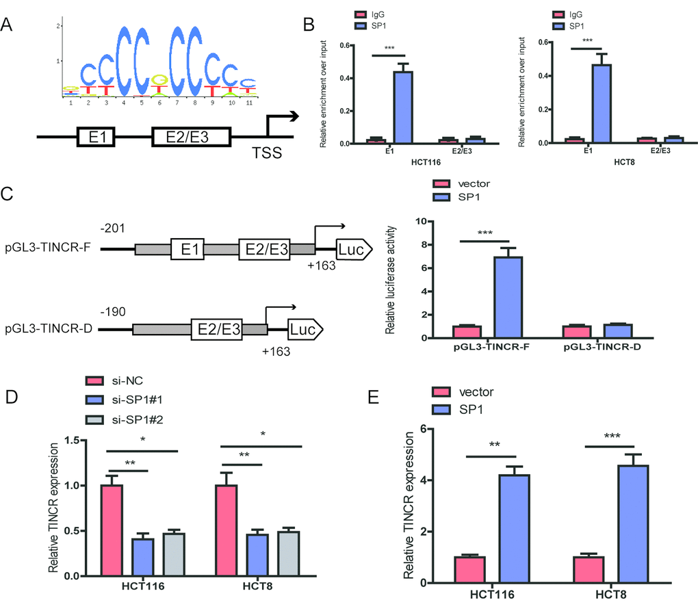 SP1 induces TINCR expression by functioning as a transcription factor