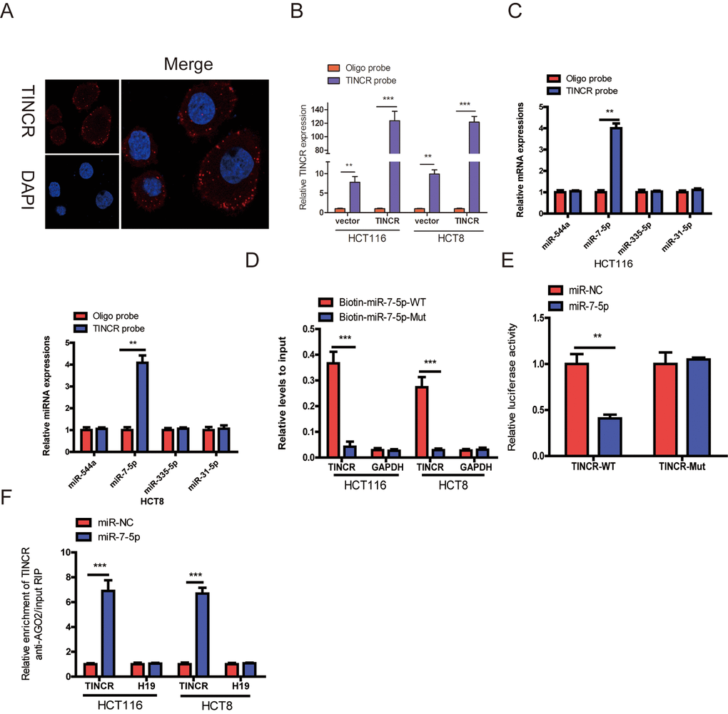 TINCR can sponge miR-7-5p in CRC cells