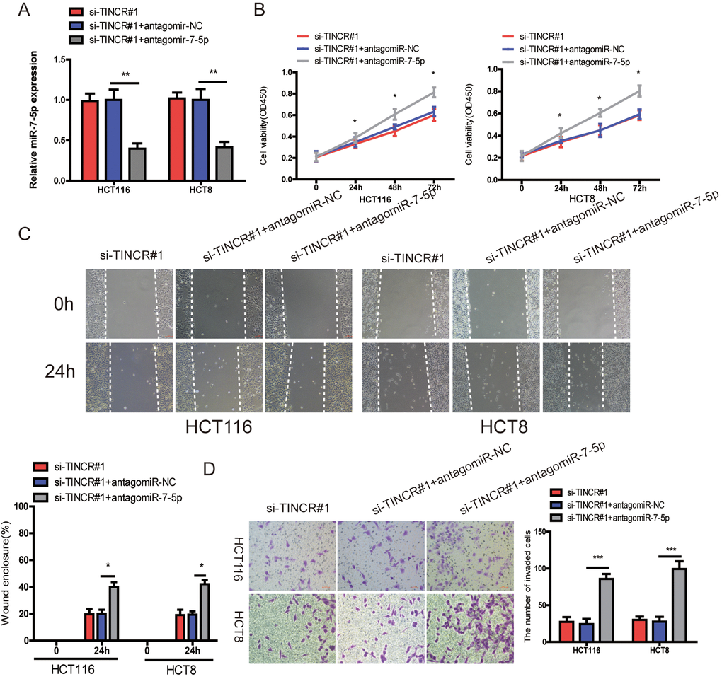 miR-7-5p inhibition could reverse the inhibitory effect of TINCR downregulation