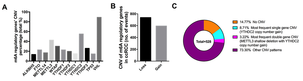 Mutations and CNVs of m6A regulatory genes in ccRCC patients