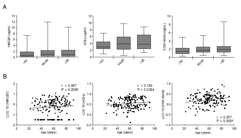 AGEs and S100A8/A9 but not HMGB1 increase with aging