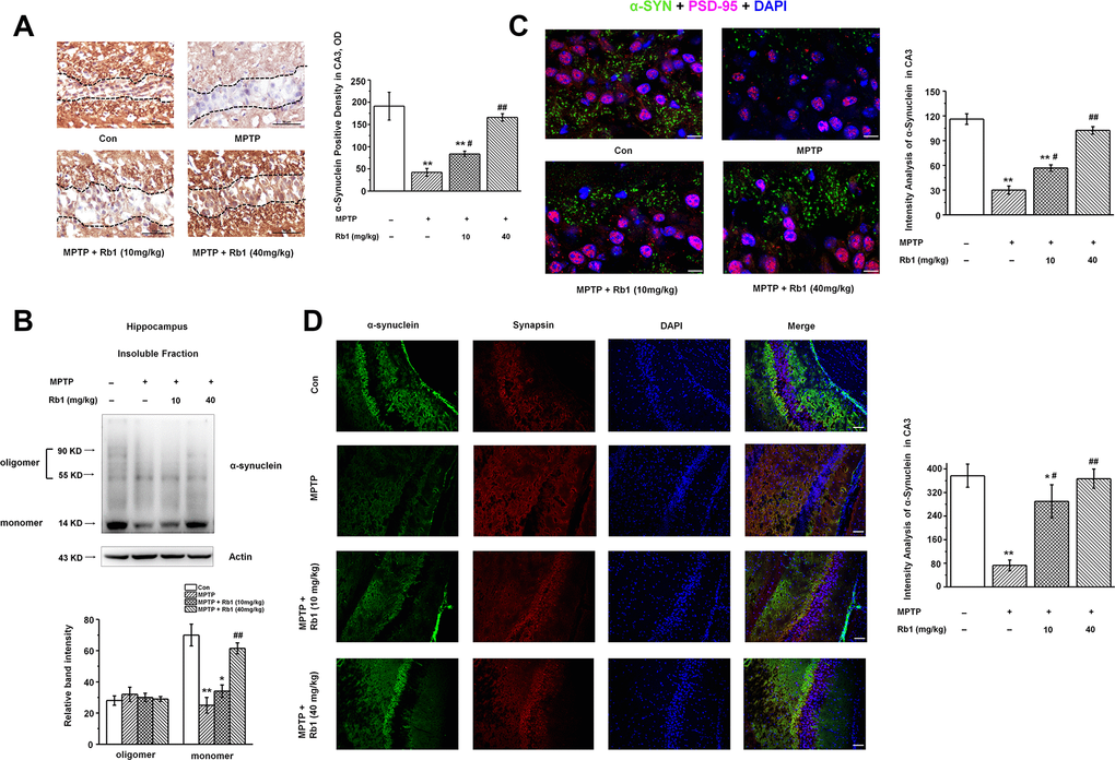 Rb1 prevented the MPTP-induced decrease of α-synuclein expression in the hippocampal CA3 region