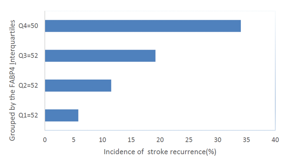 In summary, this cohort study was performed on nondiabetic patients with ischemic stroke. The results indicated that increased FABP4 level in serum was related to higher risk of early stroke recurrence in the future, independent of baseline variables. Because it makes critical effects at multiple stages of stroke development, FABP4 will be worthy of further research as a possible therapeutic target.