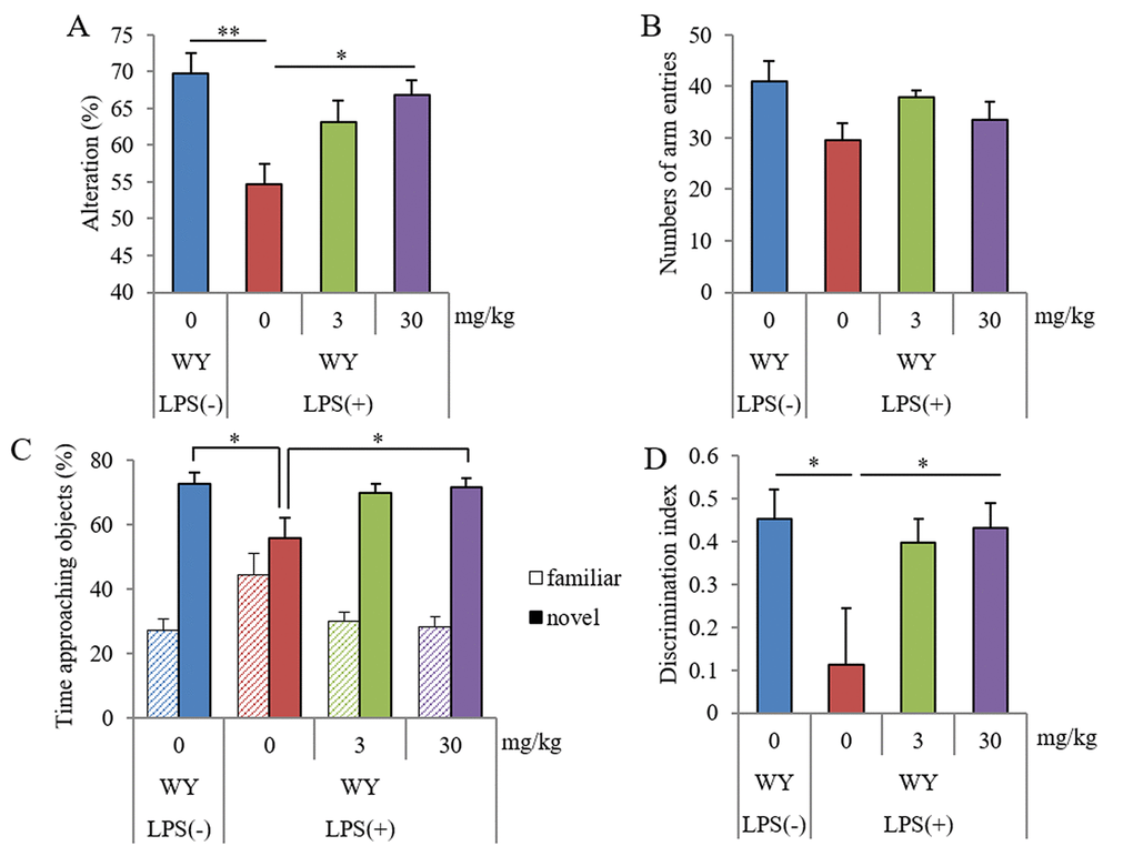 Improvement of the WY peptide on memory impairment induced by inflammation