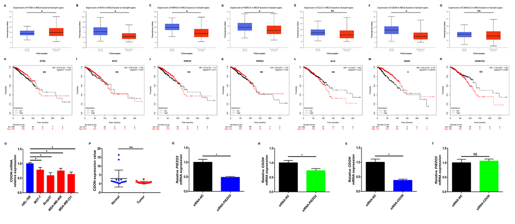 Expression of PIEZO2 mRNA and protein in different human normal and cancer tissues were determined using the Human Protein Atlas (HPA) database [23]. CDON protein expression level in breast cancer tissues and normal breast tissues was also analyzed using HPA database.