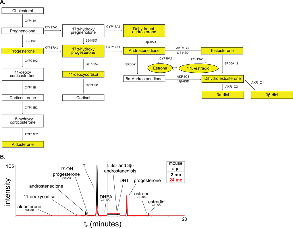 Table 3. Circulating serum steroid hormone concentration from young and aged mice as measured by the LC-MS2 panel.