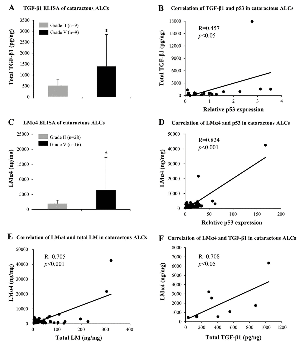 TGF-β1 and LMα4 are elevated in cataractous ALCs with senescence