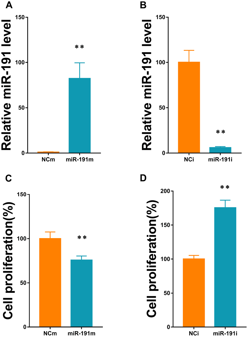 Transfection of miR-191 mimic or inhibitor into HUVECs