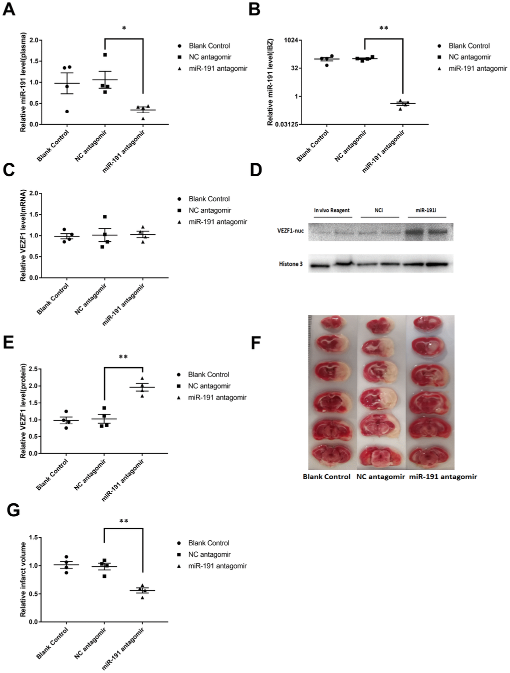Intracerebroventricular injection of the miR-191 antagomir