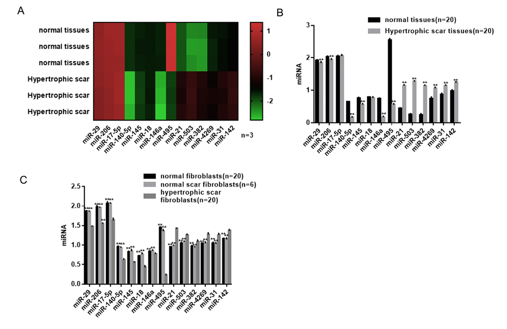 Differential expression profile of miRNAs in hypertrophic scar tissues