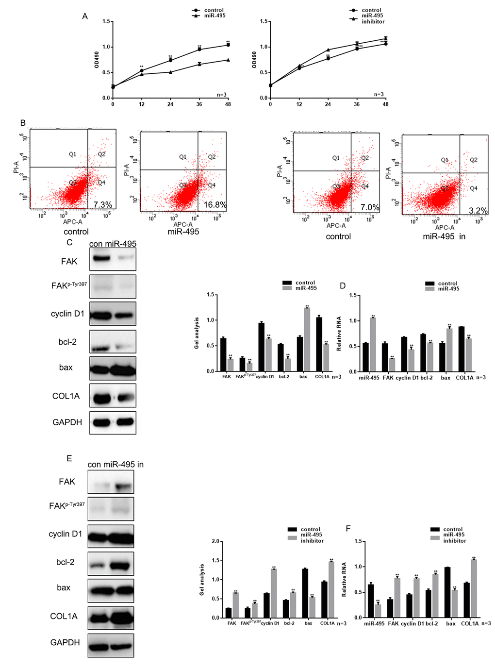 Relationship between miR-495 and FAK